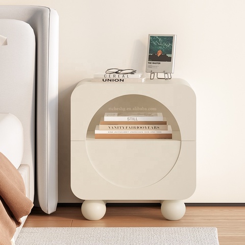 לילה מינימליסטי מודרני לעמוד לילה עץ חדר שינה ליד המיטה עם רגל עגולה ומגירה