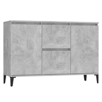 מזנון רב תכליתי אפור מבטון לאחסון גדול, מעץ, לסלון ופינת אוכל, עם 2 מגירות ודלתות
