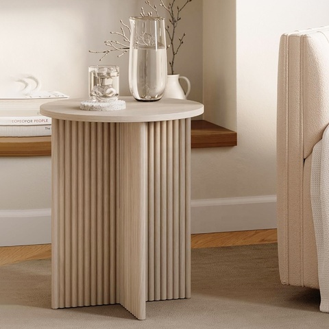 שולחן קפה עגול מודרני מחורץ מעץ MDF, שולחן מרכזי