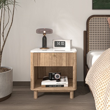 1 Drawer Fluted Marble Look Nightstand Wooden Hotel Bedroom Furniture Nightstand Bedside Table, Bedside Cabinet