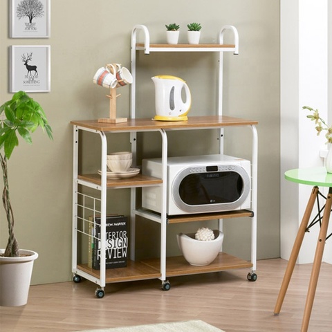 Multifunctionele Huishoudelijke 5 Tier Staande Metalen Houten Specerij Magnetron Houder Organizer Keuken Opbergrek Plank, Bakker Rek