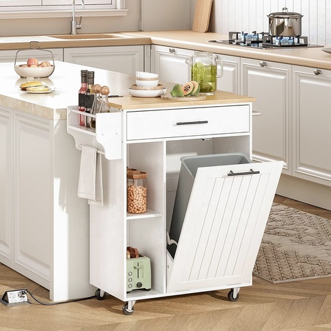 Moderne Witte Mobiele Kanteling Uit Vuilnisbak Houten Keuken Eilandkar Op Wielen