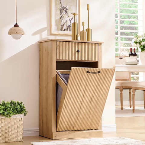 Moderne Indoor Gecanneleerde Paneel Houten Woonkamer Uittrekbare Vuilnisbak Keukenkast