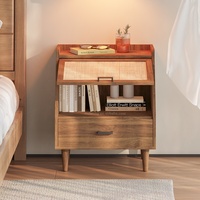 طاولة خشبية بجانب السرير مع درج من الراتان وتأثير الجوز