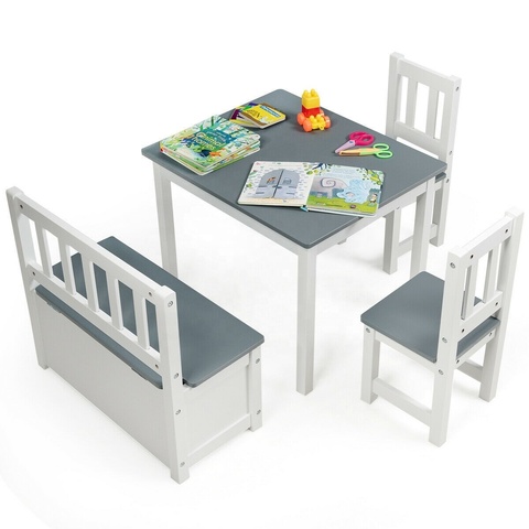 مخصص تصميم الخشب الأطفال حزب القراءة دراسة الأثاث الاطفال الجدول و 2 طقم كراسي مع علب تخزين ، الجدول الكراسي للأطفال