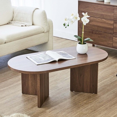 Minimalista Acabamento De Noz Simples Sala De Madeira Mesa De Café Oval