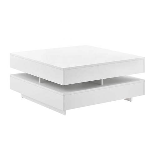 Mesa de Café Contemporânea Branca de Alto Brilho em Madeira Chipboard com Gaveta de Armazenamento
